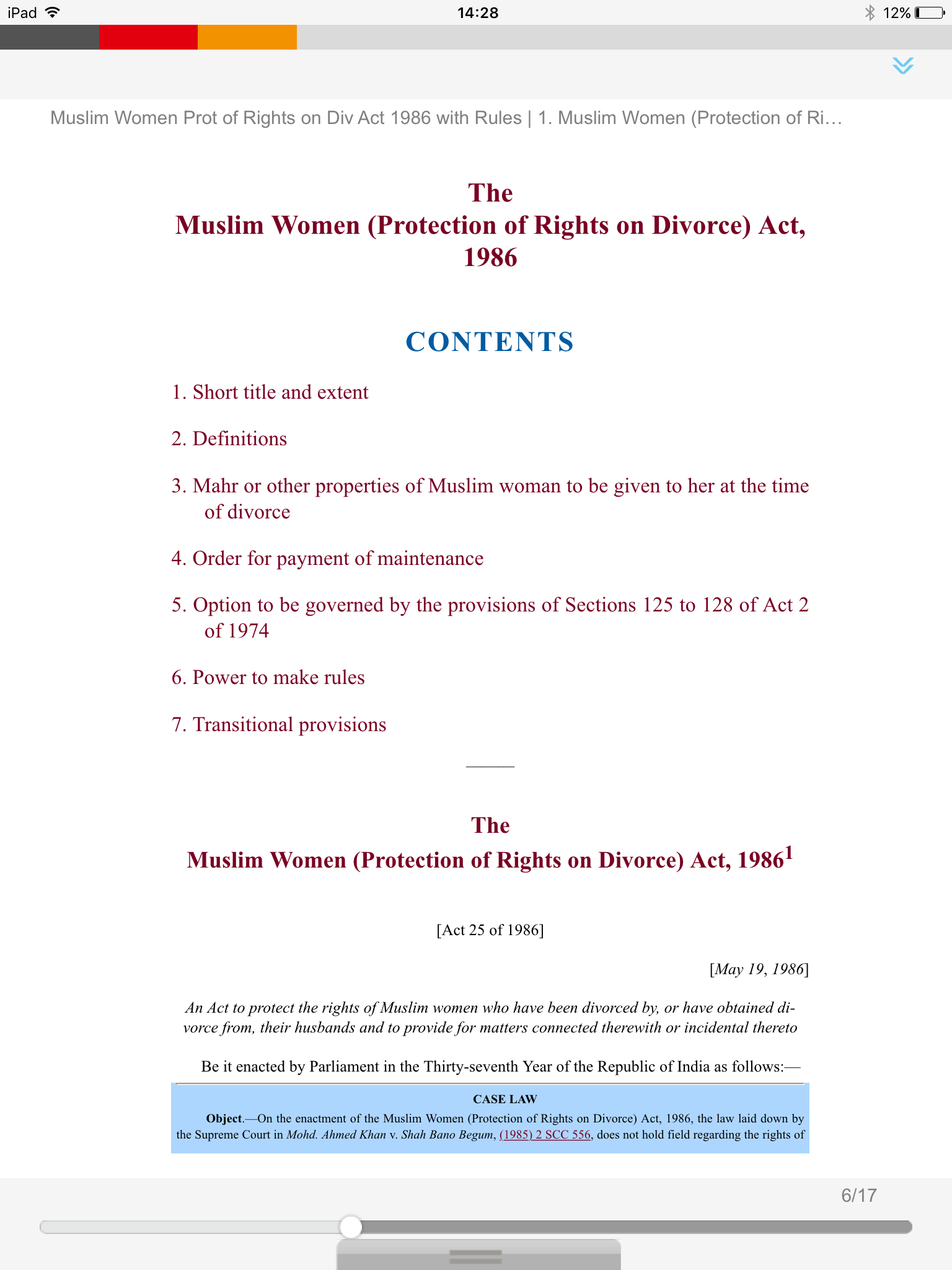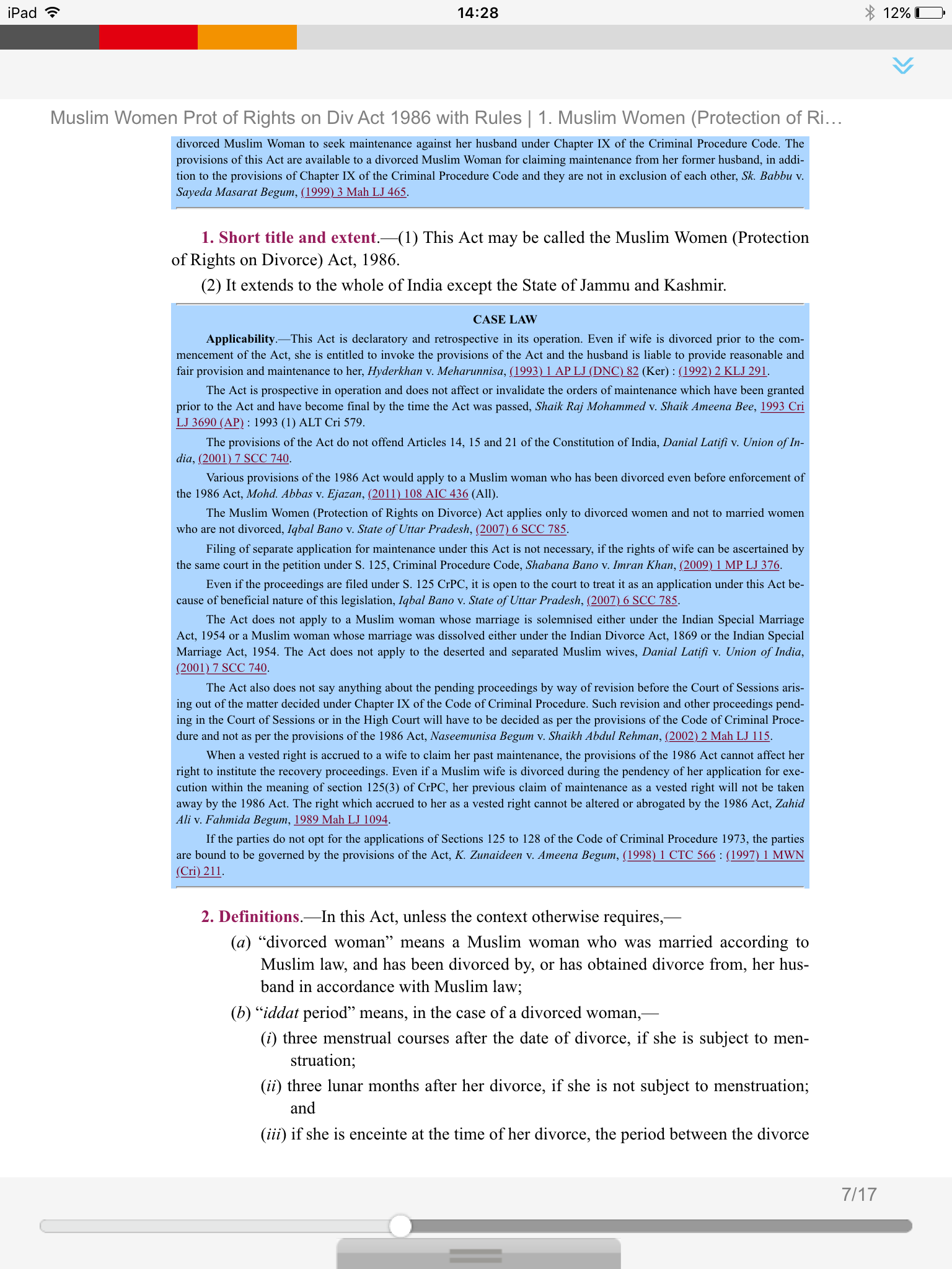 1-Muslim Women (Protection of Rights on Divorce) Act, 1986