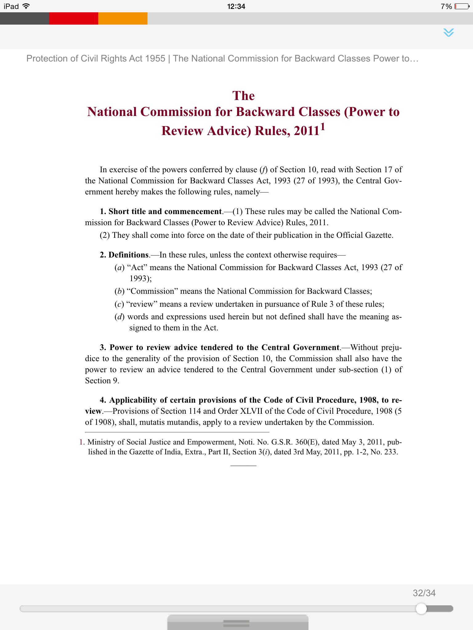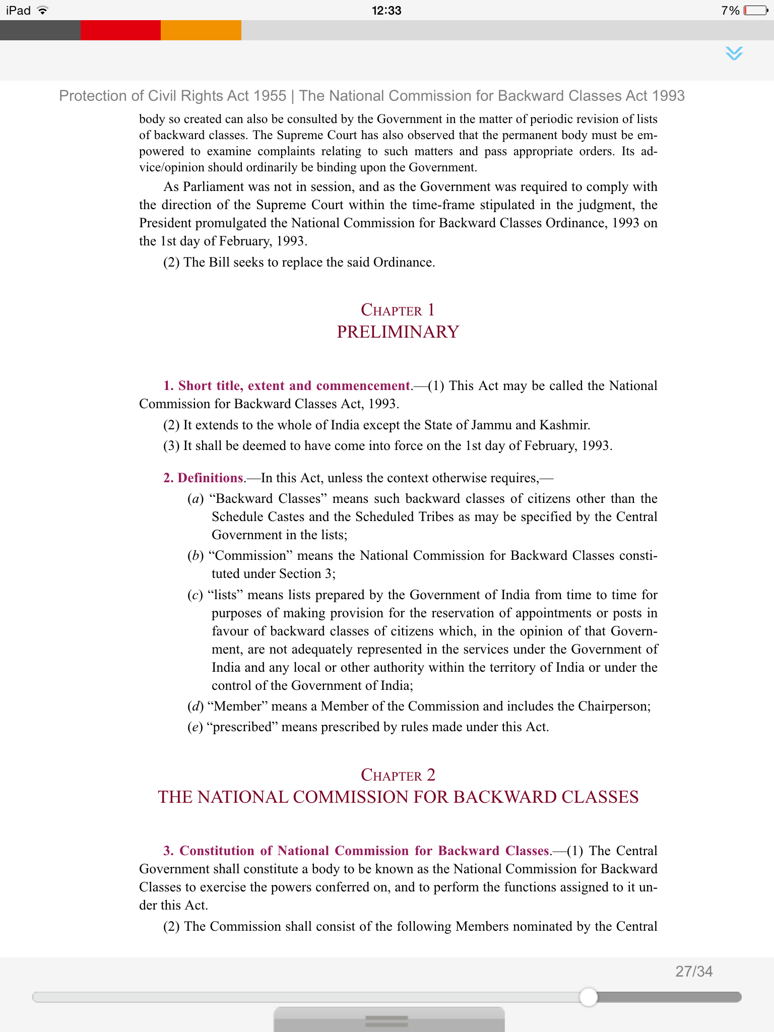 The Bare Act comes along with Protection of civil Rights Rules, 1977, National Commission for Backward Classes Act, 1993, National commission for Backward Classes ( Power to Review Advice) rules, 2011 and Case Law with complete legislative history.